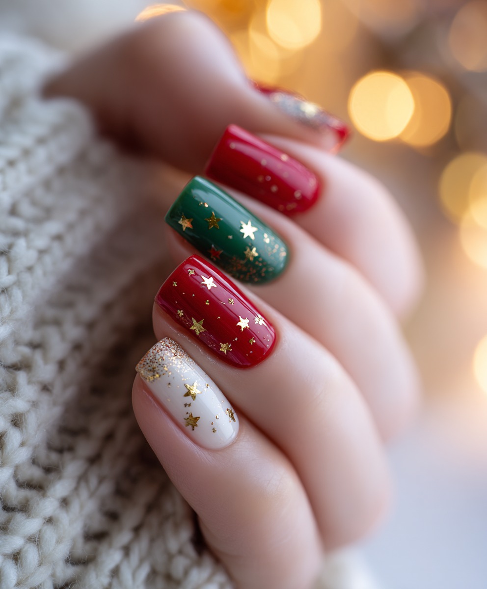 Entre todas las opciones, un diseño en rojo, verde y blanco con detalles dorados se ha convertido en el favorito de la temporada. No solo es llamativo y festivo, sino que también representa muy bien la estética moderna de la Navidad: elegante, minimalista y con un toque de brillo metálico.