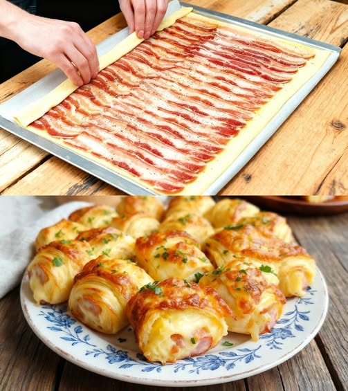 🧀🥓 Nunca es suficiente una sola bandeja de estos rollitos de queso y bacon: desaparecen en minutos…