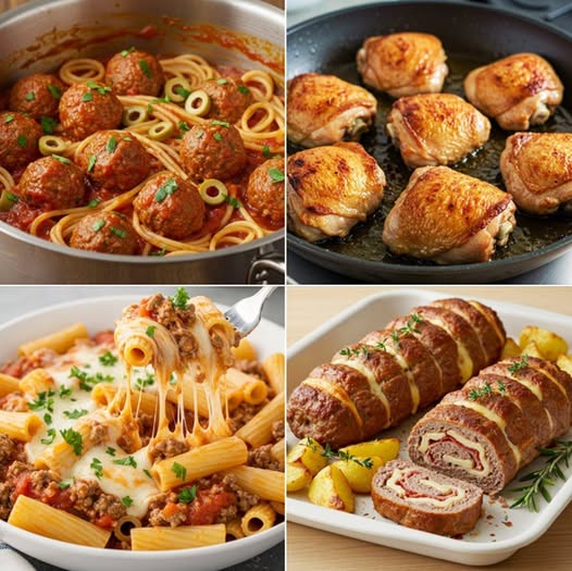 Finalmente, el rollo de carne relleno con queso, jamón y tocino se convierte en la opción ideal para sorprender sin complicaciones. Este plato no solo es visualmente atractivo, sino que también ofrece una combinación de sabores intensos y una textura suave que lo hacen perfecto para reuniones familiares o almuerzos especiales. Acompañado de papas al horno y una vinagreta fresca, se transforma en una comida completa y equilibrada. Estas recetas no solo permiten ahorrar dinero al cocinar en casa, sino que también brindan la oportunidad de controlar los ingredientes y adaptar los sabores al gusto personal. Sin duda, son ideas prácticas, populares y muy buscadas, perfectas para quienes desean disfrutar de almuerzos caseros deliciosos, nutritivos y llenos de sabor. 🍽️✨