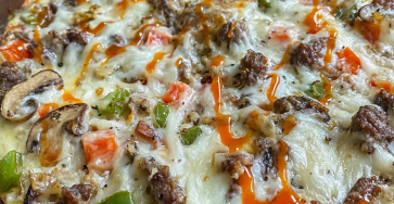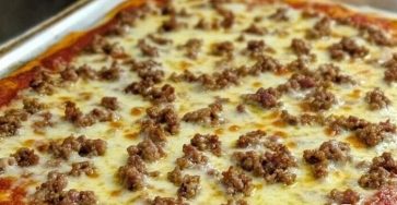 Classic “School” Pizza This sheet-pan pizza brings back the beloved cafeteria slice: a quick-rise thick crust, herb-forward sauce, crumbled sausage-beef…