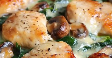 This hearty low-carb oven dish brings together tender chicken, earthy mushrooms, and wilted spinach in a creamy cheese-laden bake that’s…