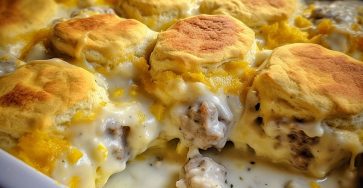 Biscuits and Gravy with Sausage and Egg Breakfast Casserole