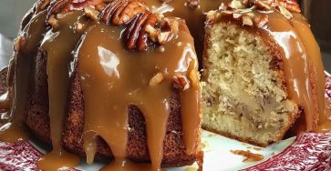 Butter Pecan Pound Cake with Caramel Glaze