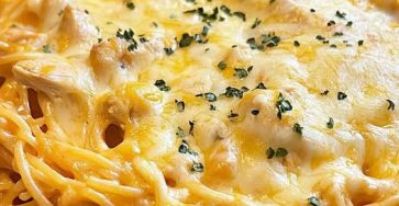 Slow Cooker Amish Cheesy Chicken Spaghetti