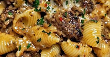 Tender, juicy steak bites seared in a garlicky herb butter and served over pasta shells coated in a luxuriously smooth…