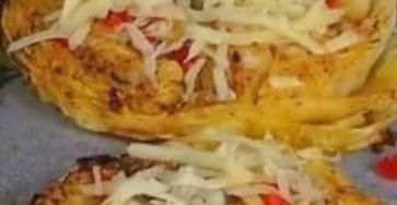 Vegan Baked Cabbage with Cheese and Creamy Sauce