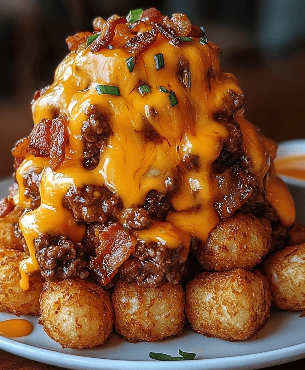 These Bacon Cheeseburger Stuffed Tater Tot Cones are a true showstopper. They combine the classic flavors of a bacon cheeseburger with a crispy tater tot shell, topped with a “colossal cheese volcano” of extra cheesy goodness. This recipe is perfect for game day, a party, or any time you want an over-the-top, savory treat.