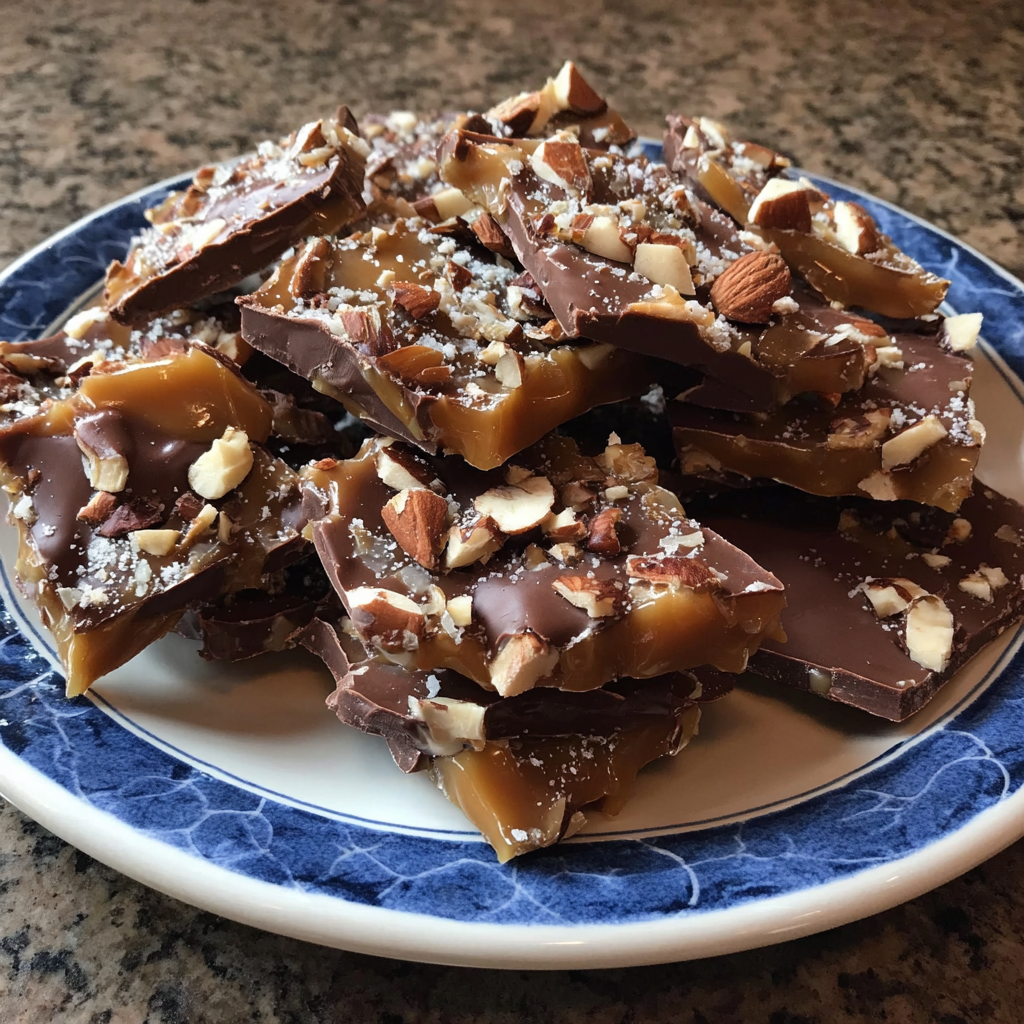7. Optional: For a gourmet touch, sprinkle a pinch of flaky sea salt over the toffee to enhance the flavors.