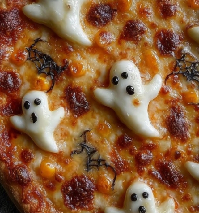 Recipe Introduction: This Halloween, bring spooky fun to your dinner table with this Ghost Pizza! Featuring ghost-shaped mozzarella cheese and spider web details, it’s a creative and delicious treat for the whole family. Perfect for Halloween parties or a fun, themed dinner.Ingredients:1 pizza dough (store-bought or homemade)1 cup mozzarella cheese (shredded)1/2 cup grated cheddar cheese1/4 cup black olives (for the eyes)1/4 cup sweet corn (for decoration)1/4 cup pizza sauce1 tablespoon olive oil1/2 cup black food coloring (for spider web design)Optional: Fresh herbs (like oregano or basil) for garnishInstructions:Preheat the Oven: Preheat your oven to 220°C (425°F).Prepare the Dough: Roll out the pizza dough on a floured surface to your desired thickness and place it on a baking sheet or pizza stone.Add Sauce: Spread a thin layer of pizza sauce over the dough, leaving a small border around the edges for the crust.Layer the Cheese: Sprinkle a generous amount of shredded mozzarella cheese evenly over the sauce. Add grated cheddar for extra flavor.Create the Ghosts: Use mozzarella cheese to create ghost shapes on the pizza. You can use a spoon or a mold for perfect ghost figures. Place black olive pieces as eyes and mouths for each ghost.Decorate with Corn: Add sweet corn around the ghosts to create a colorful effect.Spider Web Design: Use black food coloring to draw small spider webs between the ghosts, or drizzle it to create web patterns.Bake: Drizzle olive oil over the pizza and bake it in the oven for 10-12 minutes, or until the crust is golden and the cheese is bubbly and slightly browned.Serve: Remove from the oven and let it cool for a minute before slicing. Serve with a side of creepy Halloween-themed drinks or enjoy on its own!This Ghost Pizza is sure to be the hit of your Halloween celebration—it’s as fun to make as it is to eat!