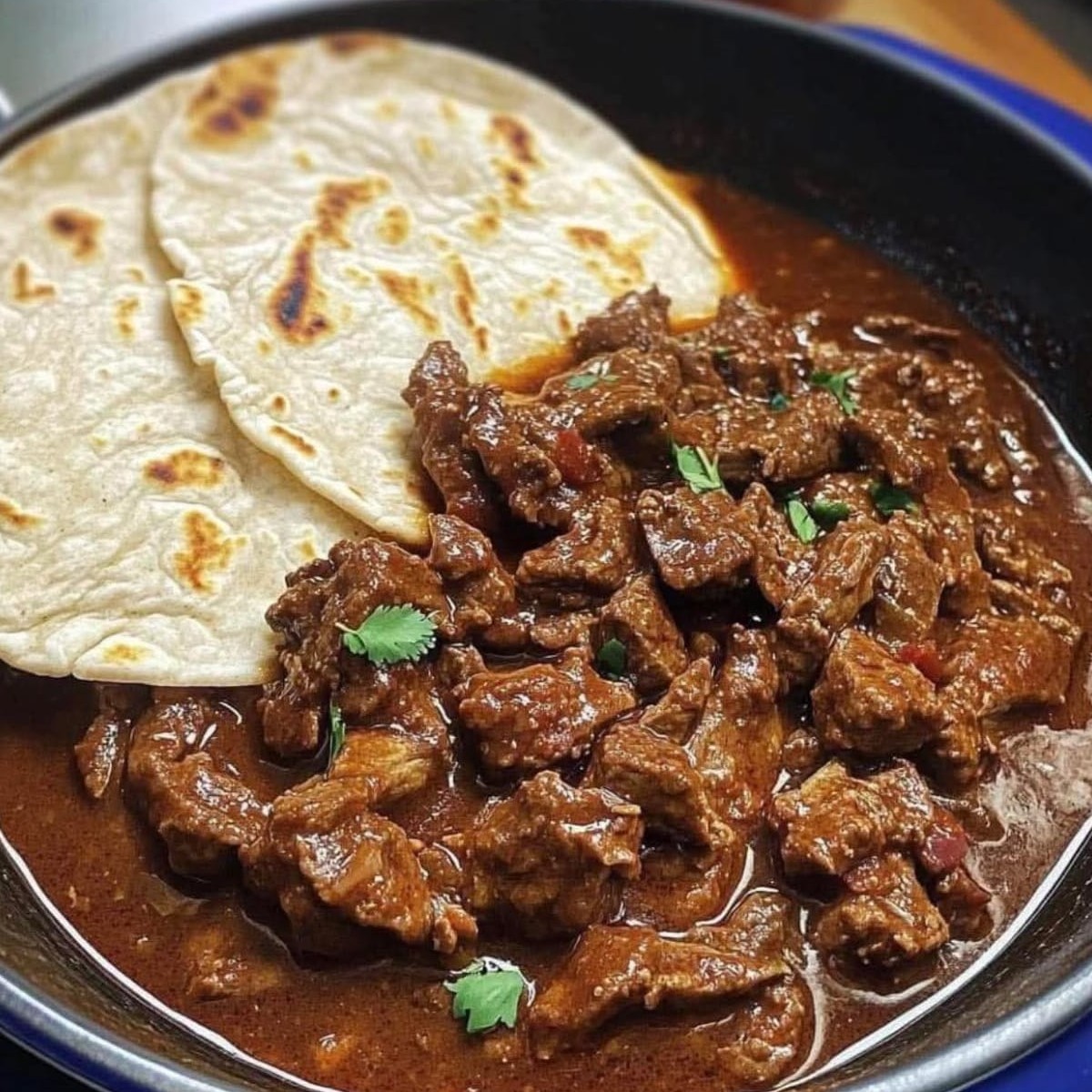 Tender beef simmered low and slow in a savory gravy until melt-in-your-mouth soft, served with warm homemade flour tortillas.