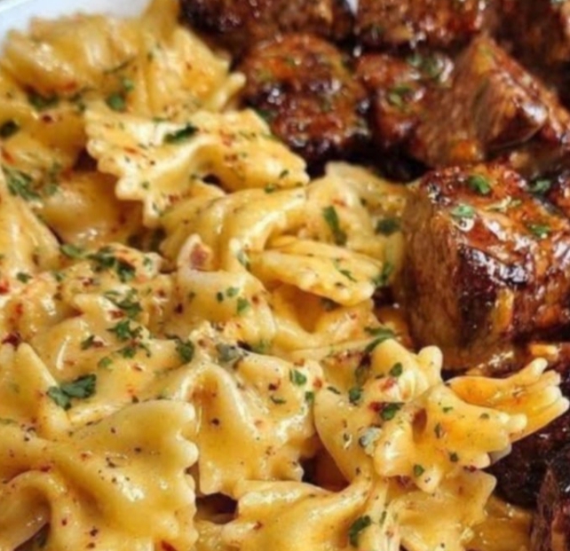 Ingredients:1 pound boneless, skinless chicken breasts, cut into bite-sized pieces2 tablespoons olive oilSalt and black pepper, to taste1 teaspoon Italian seasoningDescription:Indulge in a rich and flavorful dish featuring tender chicken cooked in a luscious creamy garlic butter sauce, paired with perfectly cooked linguine in a velvety Alfredo sauce. This dish brings together the perfect balance of savory flavors and creamy textures, making it an ideal comfort meal for any occasion.Preparation Notes:For the Chicken: Start by heating olive oil in a skillet over medium-high heat. Season the chicken with salt, pepper, and Italian seasoning. Sauté until golden brown and cooked through.For the Linguine: Cook the linguine according to package instructions, ensuring it’s al dente for the perfect texture.For the Sauce: Combine garlic butter and Alfredo sauce to create a smooth, creamy sauce. Toss the linguine in the sauce to coat evenly, then add the sautéed chicken for the ultimate flavor fusion.Serving Suggestions:Serve hot, garnished with freshly chopped parsley and a sprinkle of grated Parmesan cheese for added flavor.Perfect For: A cozy dinner with family, a date night, or impressing your guests with a restaurant-quality dish right at home!