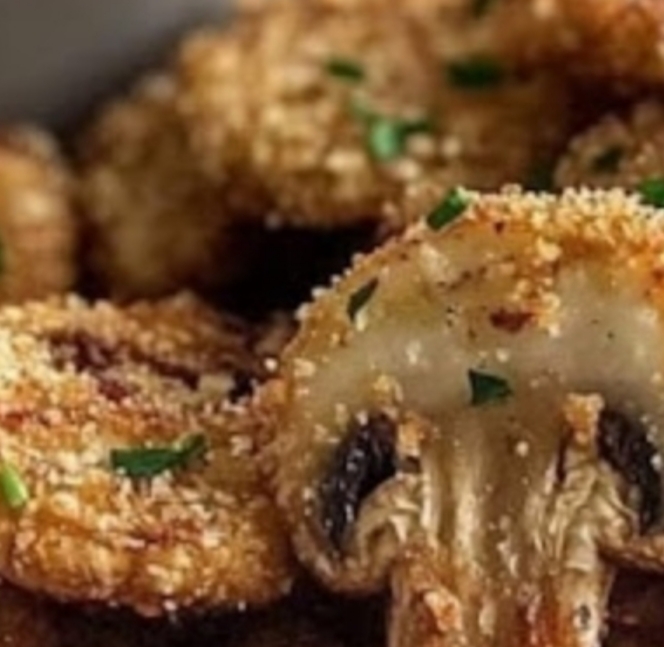 Ingredients12 oz (340 g) fresh button or cremini mushrooms, cleaned and halved4 cloves garlic, minced2 large eggs¾ cup all-purpose flour1 cup breadcrumbs (panko for extra crunch)½ cup grated Parmesan cheese (optional but highly recommended)1 tsp salt½ tsp freshly ground black pepper1 tsp dried Italian herbs or parsleyVegetable oil for fryingOptional:Pinch of chili flakes for heatLemon wedges for serving—Tools You’ll NeedMixing bowlsFrying pan or deep fryerSlotted spoon or tongsPaper towels or wire rackKnife and cutting board—Step-by-Step MethodStep 1: Prep the MushroomsGently clean the mushrooms with a damp cloth or paper towel to remove dirt—don’t rinse under water, as mushrooms soak up moisture. Halve or quarter them depending on size for bite-size pieces.Optional: Lightly salt the mushrooms and let them sit for 10 minutes. This draws out excess moisture and helps keep them crisp.Pat them dry before coating.—Step 2: Set Up a Dredging StationYou’ll need three shallow bowls:Bowl 1: All-purpose flour mixed with salt and pepper.Bowl 2: Beaten eggs with minced garlic stirred in.Bowl 3: Breadcrumbs mixed with Parmesan and herbs.The garlic in the egg wash infuses flavor directly into the mushroom coating.Step 3: Coat the MushroomsOne at a time, dip each mushroom piece in flour (shake off excess), then into the egg mixture, and finally into the breadcrumb-Parmesan mix. Press lightly to ensure a good coating.Pro tip: Double dip for extra crunch—repeat the egg and breadcrumb step.—Step 4: Fry Until GoldenHeat about 2 inches of oil in a deep pan to 350°F (175°C). Carefully add mushrooms in batches—don’t overcrowd the pan.Fry 2–3 minutes per side, or until golden brown and crispy. Remove with a slotted spoon and drain on paper towels or a wire rack.Alternative: Bake at 425°F (220°C) for 20–25 minutes, flipping halfway. Or air-fry at 390°F (200°C) for 10–12 minutes.—Step 5: Finish with Garlic & GarnishOptional but awesome: While still hot, toss the crispy bites with a little more freshly minced garlic, chili flakes, or chopped parsley. This adds even more depth and aroma.—Step 6: Serve and DipServe your Crispy Garlic Mushroom Bites hot with your favorite dip:Garlic aioliRanch dressingSpicy sriracha mayoYogurt-dill sauceAdd a wedge of lemon on the side for brightness.—Storage TipsIf you somehow have leftovers:Refrigerate in an airtight container for up to 3 days.Re-crisp in the oven or air fryer—avoid microwaving, which makes them soggy.—Final ThoughtsCrispy Garlic Mushroom Bites are more than just a snack—they’re a flavor bomb. The contrast between the golden, garlicky crust and juicy mushroom interior makes them addictive. Whether you’re entertaining or just treating yourself, these little bites of umami magic will keep you reaching for more.Would you like a printable version of this recipe or ideas for turning it into a main dish?Enjoy!