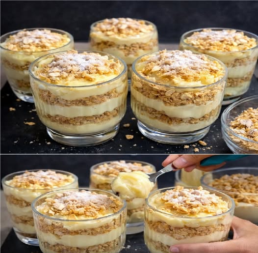 Hay días en los que el antojo de algo dulce aparece sin avisar, pero las ganas de pasar horas en la cocina simplemente no existen. Para esos momentos, este postre se ha convertido en un verdadero salvavidas: el Napoleón en vaso. Es rápido, no requiere horno y se prepara con ingredientes sencillos que casi siempre tenemos en casa. A diferencia del clásico Napoleón, que suele ser elaborado y delicado, esta versión en vaso conserva todo el sabor y la textura que lo hacen irresistible, pero sin complicaciones. Capas crujientes, crema suave y un toque dulce que conquista desde la primera cucharada. No es exageración decir que, cuando lo preparo, rara vez dura más de dos minutos servido en la mesa.