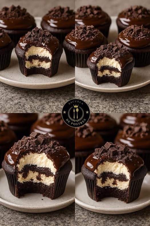 Más allá de su sabor, estos cupcakes son prácticos y versátiles. Se pueden preparar con anticipación y conservar en refrigeración, lo que permite disfrutarlos durante varios días sin perder su frescura. Además, son ideales para quienes quieren ofrecer un postre elegante sin complicarse demasiado en la cocina. La combinación de chocolate y cheesecake no solo es deliciosa, sino que también permite experimentar con variaciones: agregar trozos de chocolate, caramelo, nueces o incluso un toque de café en la masa puede convertir cada preparación en una versión única. Con esta receta, cualquier persona puede sorprender a sus invitados con un postre que combina creatividad, sabor y una textura inolvidable, convirtiendo los cupcakes de chocolate rellenos de cheesecake en un clásico imprescindible de la repostería casera.