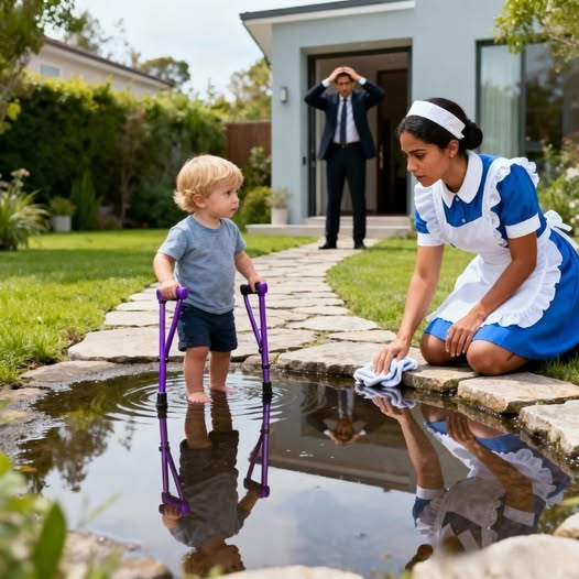 Mateo, su hijo de tres años, estaba de pie. El mismo niño al que los médicos habían sentenciado a no caminar jamás. Estaba solo, apoyado en unas pequeñas muletas moradas. A su lado, arrodillada, estaba Isabel, la empleada discreta que siempre pasaba desapercibida. Tenía los ojos llenos de lágrimas y una sonrisa que no podía esconder. El piso estaba húmedo; había estado limpiando para evitar que el niño resbalara. Mateo avanzó un paso más. Inseguro, lento, pero firme. Levantó la vista y vio a su padre. “¡Papá!”, dijo con una emoción que quebró el aire. “¡Mira! ¡Estoy caminando!”. La copa que Alejandro aún sostenía cayó al suelo y se hizo añicos. No lo notó. Se llevó las manos a la cabeza mientras las lágrimas caían sin permiso. Durante años había confiado solo en médicos caros, clínicas exclusivas y diagnósticos fríos. Había aceptado la sentencia sin cuestionarla, convencido de que el dinero podía comprar todas las respuestas. Nunca imaginó que la esperanza estaba ocurriendo en su propia casa, en silencio, de madrugada.