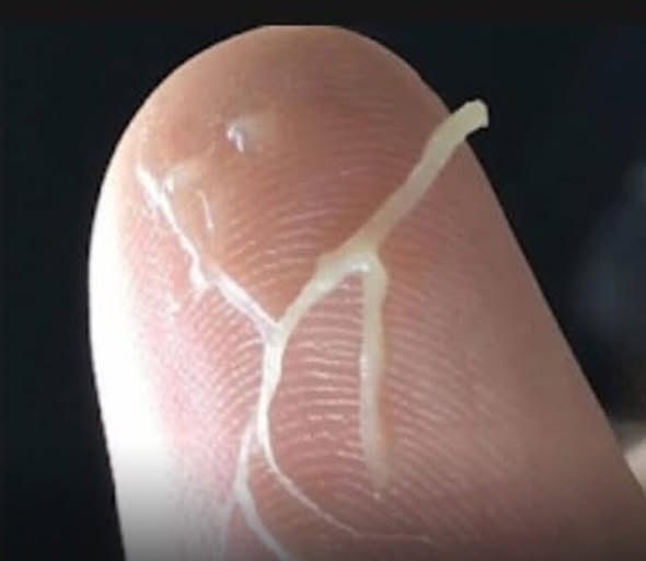 - La secreción es transparente, elástica y con textura similar a la clara de huevo.