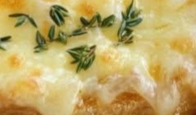 Instructions:Caramelize Onions: Heat olive oil and butter in a pot over medium heat. Add onions and cook, stirring occasionally, for 10 minutes. Sprinkle with sugar and cook uncovered, stirring occasionally, for 30-40 minutes until caramelized and browned. Add garlic and cook for 1 more minute.Deglaze and Simmer: Add sherry, scraping the pot to deglaze. Stir until sherry is evaporated (3 minutes). Add beef stock, bay leaf, thyme, and 1 tsp salt. Simmer partially covered for 30 minutes. Adjust seasoning with remaining salt and pepper.Prepare Croutons: Preheat oven to 400°F. Slice baguette and brush with olive oil. Bake for 6-8 minutes until golden brown.Assemble and Broil: Top baguette slices with half the cheese and broil for 2-3 minutes until melted and golden.Serve: Pour soup into bowls, sprinkle with remaining cheese, and top with cheesy toasts.Enjoy!