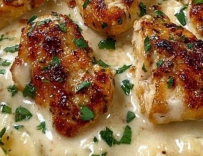 Here’s a comforting and indulgent recipe for Garlic Butter Chicken Bites with Creamy Parmesan Pasta—perfect for a cozy dinner!🥘 Ingredients (Serves 4)For the Chicken Bites1 ½ lbs boneless, skinless chicken breast or thighs, cut into bite-sized cubes2 tbsp olive oil3 tbsp butter, divided4 cloves garlic, minced1 tsp Italian seasoning½ tsp smoked paprika (optional, for depth)Salt & black pepper, to taste2 tbsp fresh parsley, choppedFor the Creamy Parmesan Pasta12 oz pasta (penne, fettuccine, or spaghetti work well)2 tbsp butter4 cloves garlic, minced1 cup heavy cream (or half & half for lighter)1 cup chicken broth1 cup freshly grated Parmesan cheese½ tsp red pepper flakes (optional)Salt & black pepper, to taste🍳 Instructions1. Cook the PastaBring a large pot of salted water to boil.Cook pasta according to package instructions until al dente.Reserve ½ cup pasta water, then drain and set aside.2. Make Garlic Butter Chicken BitesIn a large skillet, heat olive oil and 1 tbsp butter over medium-high heat.Season chicken with Italian seasoning, paprika, salt, and pepper.Add chicken to skillet in a single layer; cook 6–8 minutes, stirring occasionally, until golden and cooked through.During the last 2 minutes, add garlic and remaining 2 tbsp butter, tossing to coat.Transfer chicken bites to a plate and cover to keep warm.3. Prepare Creamy Parmesan SauceIn the same skillet, melt 2 tbsp butter over medium heat.Add garlic and sauté for 1 minute until fragrant.Stir in chicken broth and cream; bring to a gentle simmer.Lower heat, stir in Parmesan cheese until melted and sauce thickens (about 3–4 minutes).Season with red pepper flakes, salt, and pepper to taste.4. Combine Pasta & SauceAdd drained pasta into the skillet with the sauce. Toss to coat.If sauce is too thick, add a splash of reserved pasta water until creamy.5. ServeDivide creamy pasta among plates.Top with garlic butter chicken bites.Garnish with fresh parsley and extra Parmesan.🌟 Tips & VariationsSwap chicken for shrimp or salmon for a seafood twist.Add spinach or sun-dried tomatoes into the pasta for extra flavor.For extra richness, stir in 2 tbsp cream cheese into the sauce.Would you like me to also create a one-pan version (where pasta cooks directly in the sauce with the chicken) to make cleanup easier?