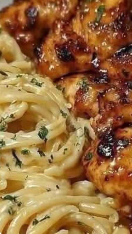 Ingredients:For the Chicken Bites:1 lb boneless, skinless chickenbreasts, cut into bite-sized pieces2 tablespoons olive oil4 tablespoons unsalted butter4 cloves garlic, mincedSalt and pepper to taste1 teaspoon Italian seasoningFresh parsley, chopped (for garnish)For the Creamy Parmesan Pasta:12 oz fettuccine or pasta of yourchoice2 tablespoons butter2 cloves garlic, minced1 cup heavy cream1 cup grated Parmesan cheese1/2 cup chicken brothSalt and pepper to tasteExtra garlic butter (optional, fordrizzling))Instructions:Cook the Pasta: Boil a large pot ofsalted water and cook the pastaaccording to package instructionsuntil al dente. Drain and set aside.Cook the Chicken Bites: In a largeskillet, heat olive oil over medium-high heat. Add the chicken bites,seasoning with salt, pepper, andItalian seasoning. Cook until goldenbrown and cooked through, about 6- 8 minutes. Remove the chicken from the skillet and set aside.Make the Garlic Butter Sauce: In thesame skillet, reduce the heat tomedium and add the butter. Oncemelted, add the minced garlic andsauté for about 30 seconds untilfragrant. Return the cooked chickento the skillet and toss to coat in thegarlic butter sauce.Prepare the Creamy ParmesanSauce: In a separate skillet, melt 2tablespoons of butter over mediumheat. Add the minced garlic andsauté for another 30 seconds. Stir inthe heavy cream and chicken broth,bringing the mixture to a gentlesimmer. Gradually whisk in thegrated Parmesan cheese untilsmooth, and season with salt and pepper to taste.Combine Pasta and Sauce: Toss thecooked pasta in the creamyParmesan sauce, ensuring it’s wellcoated.Serve: Plate the creamy Parmesanpasta and top with the garlic butterchicken bites. Drizzle with extragarlic butter if desired and garnishwith fresh parsleyPrep Time: 10 minutesCooking Time: 20 minutesTotal Time: 30 minutesEnjoy!