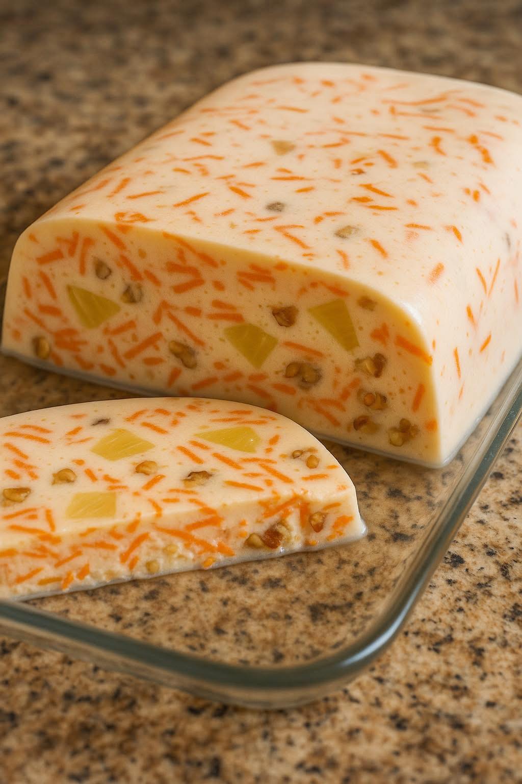 Al momento de disfrutarla, esta gelatina destaca no solo por su sabor, sino también por su versatilidad. Puede servirse como postre principal, como complemento en una comida especial o incluso en porciones pequeñas para eventos. Además, se conserva bien en refrigeración, manteniendo su frescura y su buena consistencia durante varios días. Es una excelente alternativa a los postres horneados, especialmente en climas cálidos, y una forma creativa de incorporar frutas y otros ingredientes en una receta dulce y atractiva. En definitiva, la gelatina de zanahoria, piña y nuez es una opción deliciosa, práctica y siempre bien recibida, ideal para quienes buscan un postre casero que combine sencillez, buen sabor y una presentación encantadora. 🍍🥕✨