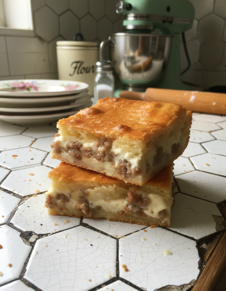 - Step 3: Assemble: Unroll one can of the crescent roll dough and gently press it into the bottom of a lightly greased 9×13-inch baking dish, pinching the seams together to form a single layer. Spread the sausage and cream cheese mixture evenly over the dough. Unroll the second can of crescent roll dough and place it on top to create a “top crust.”