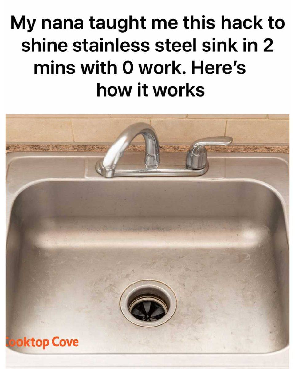 My nana taught me this hack to shine stainless steel sink in 2 mins with 0 work. Here’s how it works