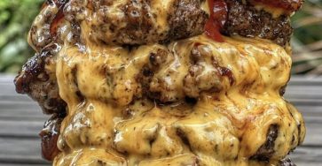 🍔 Triple Smash Cheese Explosion Burger Recipe 🔥 Ingredients (1 monster burger) For the beef patties 450g ground beef (80/20…