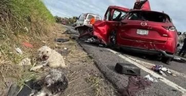 Mascotas no la abandonan tras brutal accidente rumbo a Cardel