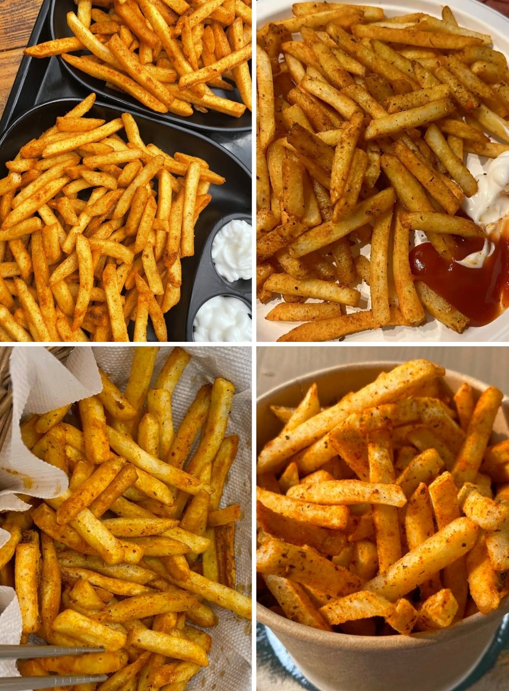 Además de ser deliciosas, estas papas fritas especiadas son muy versátiles y se pueden servir de muchas maneras. Puedes acompañarlas con salsas como mayonesa de ajo, ketchup casero o un dip de yogur con hierbas. También funcionan como base para crear snacks más elaborados, agregando queso rallado, trocitos de bacon o incluso verduras asadas. Son ideales para reuniones con amigos, celebraciones familiares o simplemente para darte un gusto en casa sin complicarte. Al hacerlas tú mismo, puedes experimentar con diferentes combinaciones de especias hasta encontrar tu versión perfecta. Así, cada bocado se convierte en una explosión de sabor, crujiente y adictivo, que hará que estas papas fritas especiadas se conviertan en tu nuevo snack favorito.
