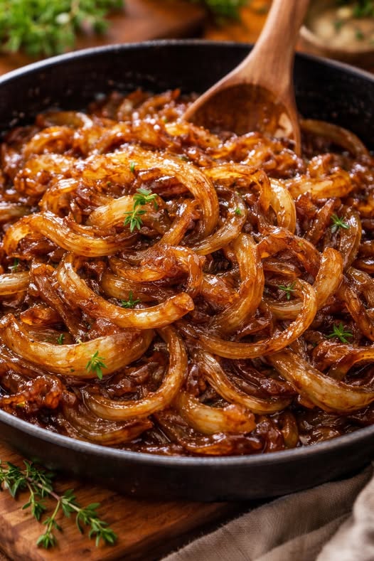 Las cebollas caramelizadas son un acompañamiento sencillo pero sorprendentemente delicioso que puede transformar cualquier receta. Su sabor dulce y profundo, resultado de la cocción lenta, combina perfectamente con carnes, pizzas, hamburguesas, ensaladas o incluso como ingrediente estrella en platos vegetarianos. Prepararlas en casa permite controlar la textura y el dulzor, logrando un equilibrio perfecto que resalte los sabores sin enmascararlos. Además, su aroma durante la cocción aporta una sensación acogedora que hace que toda la cocina se llene de un toque gourmet. Esta receta no solo es versátil, sino que también convierte ingredientes simples en un plato elegante y sabroso.