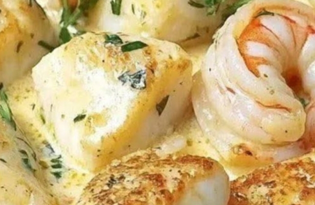 Shrimp and Cod in Creamy Garlic SauceIntroductionShrimp and Cod in Creamy Garlic Sauce is a luxurious yet comforting seafood dish that perfectly balances delicate flavors with rich creaminess. The combination of tender cod and juicy shrimp simmered in a velvety garlic-infused sauce creates a meal that feels indulgent yet wholesome. Ideal for weeknight dinners or special occasions, this recipe celebrates the natural sweetness of seafood while offering restaurant-quality depth in every bite.Origin and Cultural SignificanceThis dish draws inspiration from coastal European cuisines — particularly French and Mediterranean traditions — where seafood and cream sauces are culinary staples. Similar dishes can be found in Provençal cooking, where seafood is combined with garlic, cream, and wine to highlight local catch. It embodies the connection between sea and table, showcasing how simple, fresh ingredients can be elevated into gourmet comfort food.Ingredients and QuantitiesSERVES 4Shrimp (peeled and deveined): 300 g (about 10 oz)Cod fillets (boneless, skinless): 400 g (about 14 oz), cut into chunksButter: 2 tablespoonsOlive oil: 1 tablespoonGarlic (minced): 4 clovesShallot or small onion (finely chopped): 1Heavy cream: 1 cup (240 ml)White wine or seafood stock: ½ cup (120 ml)Lemon juice: 1 tablespoonFresh parsley (chopped): 2 tablespoonsSalt and black pepper: to tasteParmesan cheese (optional): 2 tablespoons, gratedOptional AdditionsSpinach or kale: for extra nutrition and colorCherry tomatoes: for a sweet, tangy balanceChili flakes: to add a gentle kickMushrooms: to bring earthiness to the creamy baseLinguine or rice: for serving the sauce as a complete mealTips for SuccessDo not overcook seafood — shrimp and cod cook quickly; remove from heat once opaque and flaky.Use fresh garlic, not powdered, for the best aroma and flavor depth.Deglaze the pan with wine or stock to capture all the browned flavor bits.Simmer gently — avoid boiling the cream sauce to prevent curdling.Balance with acid — a squeeze of lemon brightens the dish and keeps it from feeling too heavy.InstructionsPrepare the seafood:Pat shrimp and cod dry with paper towels. Season lightly with salt and pepper.Cook the aromatics:Heat butter and olive oil in a skillet over medium heat. Add shallot and sauté until soft and fragrant. Stir in minced garlic and cook for 30 seconds.Add liquid base:Pour in the white wine (or seafood stock) and let it simmer for 2–3 minutes to reduce slightly.Add the cream:Stir in the heavy cream and bring to a gentle simmer. Cook until the sauce begins to thicken slightly (3–4 minutes).Cook the seafood:Add cod chunks first and cook for 3–4 minutes. Then add shrimp and cook another 2–3 minutes, until shrimp turn pink and cod flakes easily.Finish the dish:Add lemon juice, chopped parsley, and a sprinkle of Parmesan if desired. Adjust seasoning with salt and pepper.Serve immediately:Serve hot over rice, pasta, or with crusty bread to soak up the sauce.DescriptionThe finished dish features flaky, tender cod and juicy shrimp bathed in a creamy, garlicky sauce with a hint of citrus and herbs. The sauce is rich yet balanced — buttery, fragrant, and irresistibly smooth. Every bite brings a harmony of textures and flavors: mild sweetness from the seafood, savory depth from garlic and cream, and freshness from parsley and lemon.Nutritional Information (Approximate per serving)Calories: 410 kcalProtein: 35 gFat: 26 gCarbohydrates: 5 gFiber: 0.5 gSugar: 2 gSodium: 520 mg(Values may vary based on ingredients and portion sizes.)ConclusionShrimp and Cod in Creamy Garlic Sauce is a dish that beautifully merges comfort with elegance. It’s easy enough for a weekday yet impressive enough for guests. Its versatility allows you to adapt it with vegetables or grains to make it lighter or heartier.RecommendationServe this dish with:A crisp green salad with lemon vinaigretteA glass of chilled white wine (like Sauvignon Blanc or Pinot Grigio)Garlic bread or herbed rice to absorb every drop of the sauceEmbracing Healthful IndulgenceWhile this dish feels indulgent, it also delivers lean protein, omega-3 fatty acids, and minerals from the seafood. Using lighter cream or half-and-half can make it more heart-friendly, and adding vegetables like spinach boosts fiber and nutrients. It’s proof that comfort food can be both satisfying and nourishing — the perfect harmony between flavor and well-being.