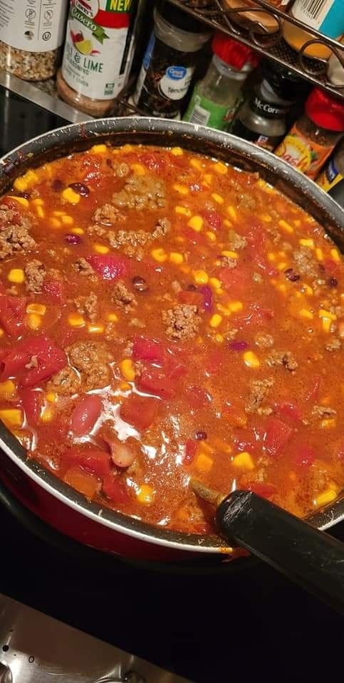 - Step 2: Combine Ingredients in Slow Cooker: Add the browned ground beef, onion, chili beans, kidney beans, corn, tomato sauce, water, diced tomatoes, green chile peppers, and taco seasoning mix to a slow cooker.