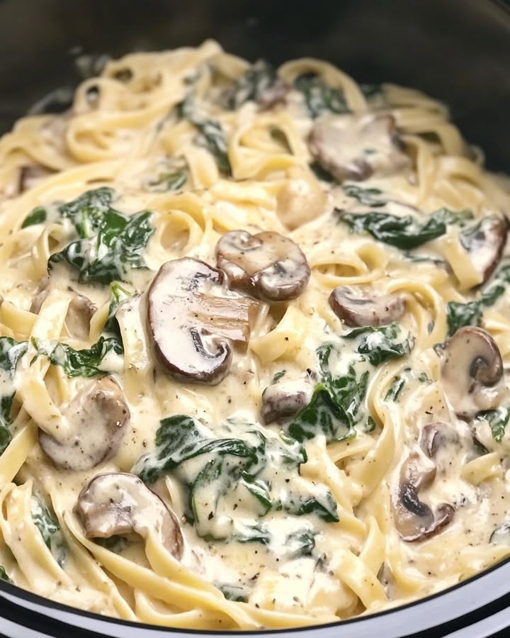 A comforting and elegant twist on the classic Roman Alfredo sauce, this slow cooker version is perfect for busy weeknights or casual dinner parties. The creamy richness of Alfredo meets the earthy flavor of mushrooms and the vibrant nutrition of spinach, creating a dish that’s both satisfying and wholesome. Plus, it’s wonderfully hands-off!