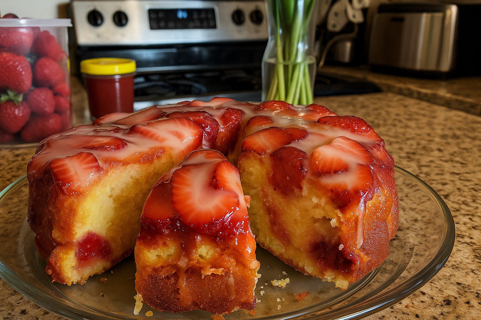 A moist, buttery pound cake bursting with strawberries and pineapple, topped with a sweet glaze.